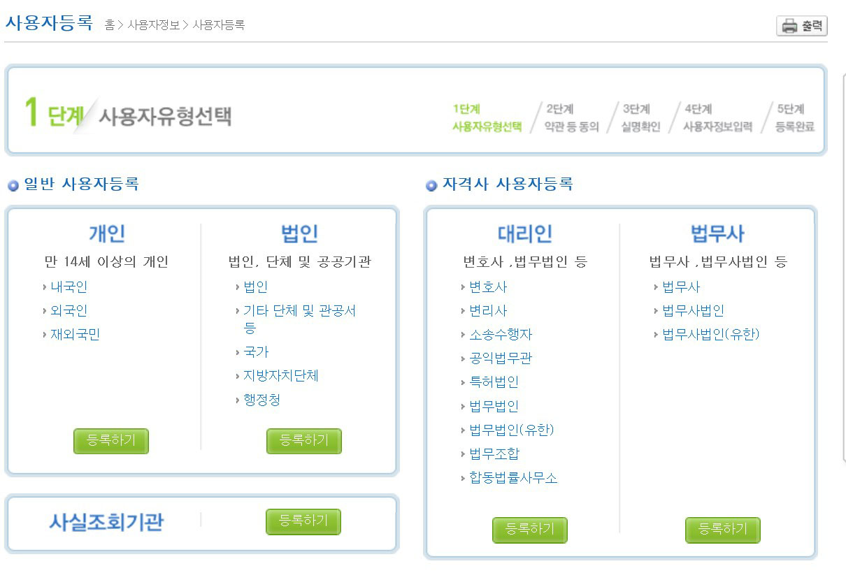 여기까지 입력을 모두 완료하셨다면! 사용자 등록이 끝납니다. 휴 고생하셨습니다. 이제 본격적으로 개명 신청을 하러 가시죠.