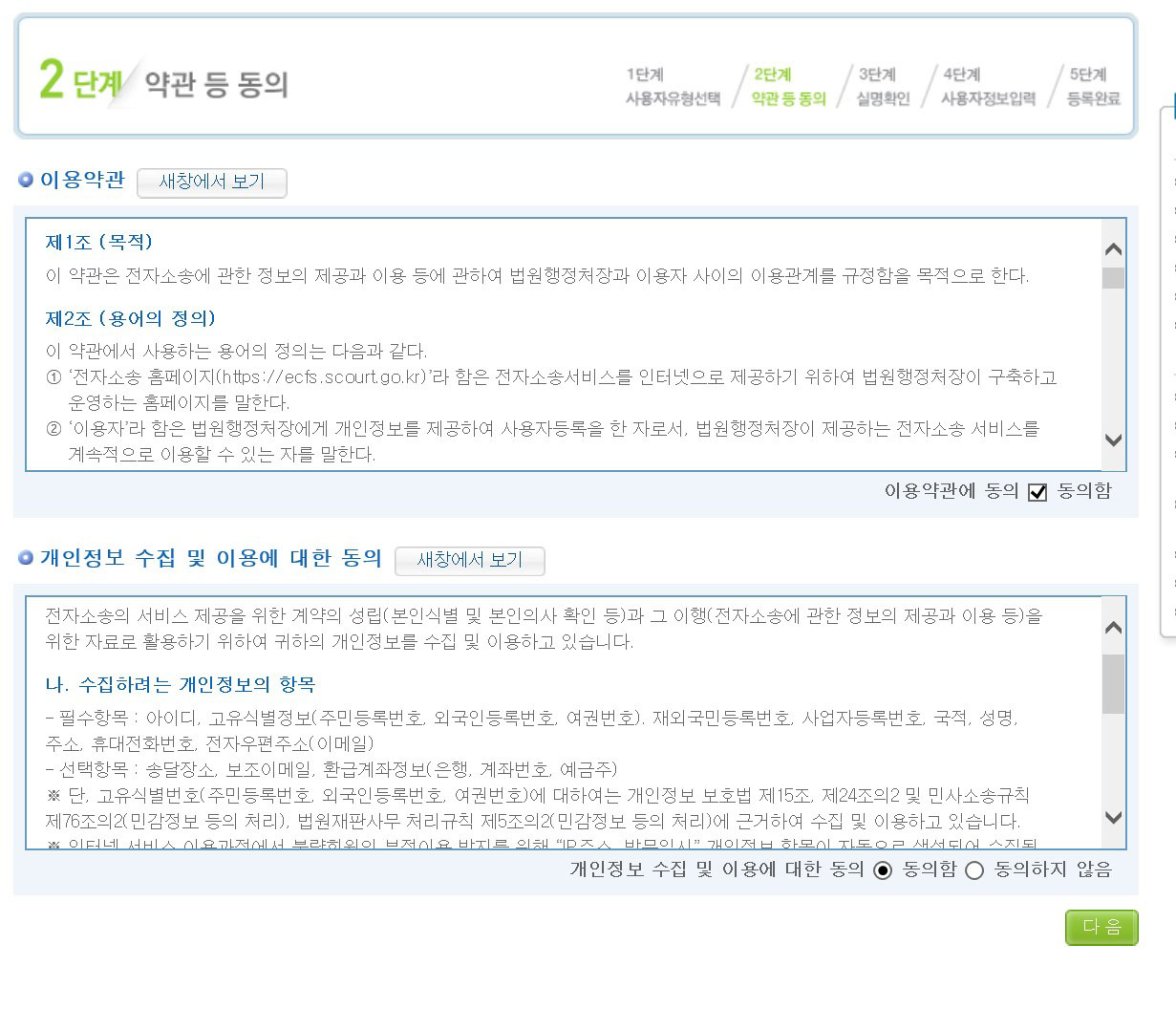 이용약관 및 개인정보 수집 이용 동의함을 눌러주시고, 다음을 넘어가주세요. 만약에 동의하지 않으신다면 그냥 법원에 직접 찾아가서 개명신청하셔야 합니다. 😭