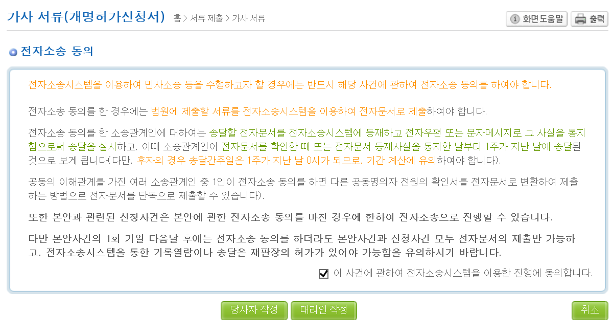 당연히 자신의 이름을 바꾼다면 당사자 작성이고, 만약 자녀의 이름이나 부모님의 이름을 대신 바꾼다면 대리인 작성을 하시면 됩니다. 그런데 제가 해보니 대리인 작성을 할때 생각보다 더 많은 서류(위임장 등)를 스캔해서 첨부해야 합니다. 따라서 대리인 작성하실 경우에는 직접 법원에 가시는 것이 훨씬 편합니다. 당사자 작성만 전자로 하는 것을 추천합니다.