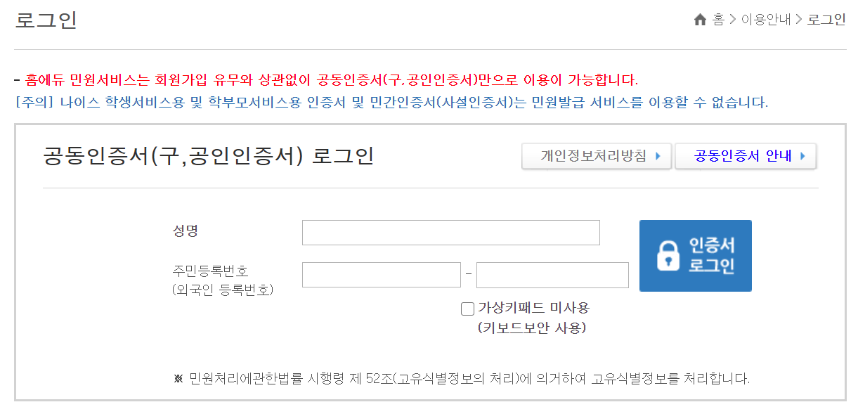 그러면 공동 인증서 로그인 화면이 나오고, 로그인을 하시면 발급받을 수 있습니다.