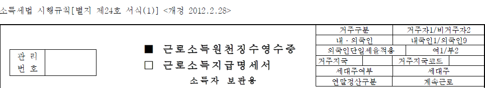 ① 전년도 근로소득원천징수영수증 또는 전년도 근로소득자용 소득금액증명서