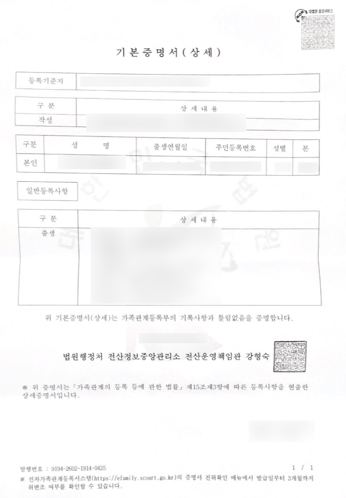 이곳에서 가족관계증명서와 기본증명서를 발급받으실 수 있습니다.