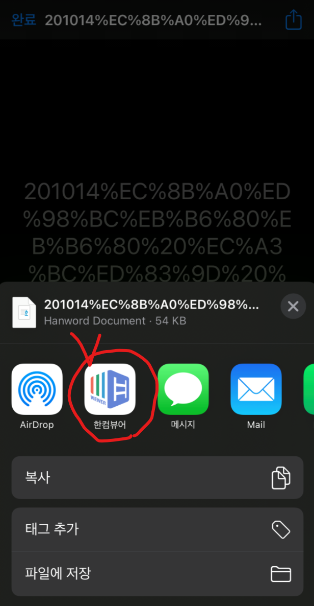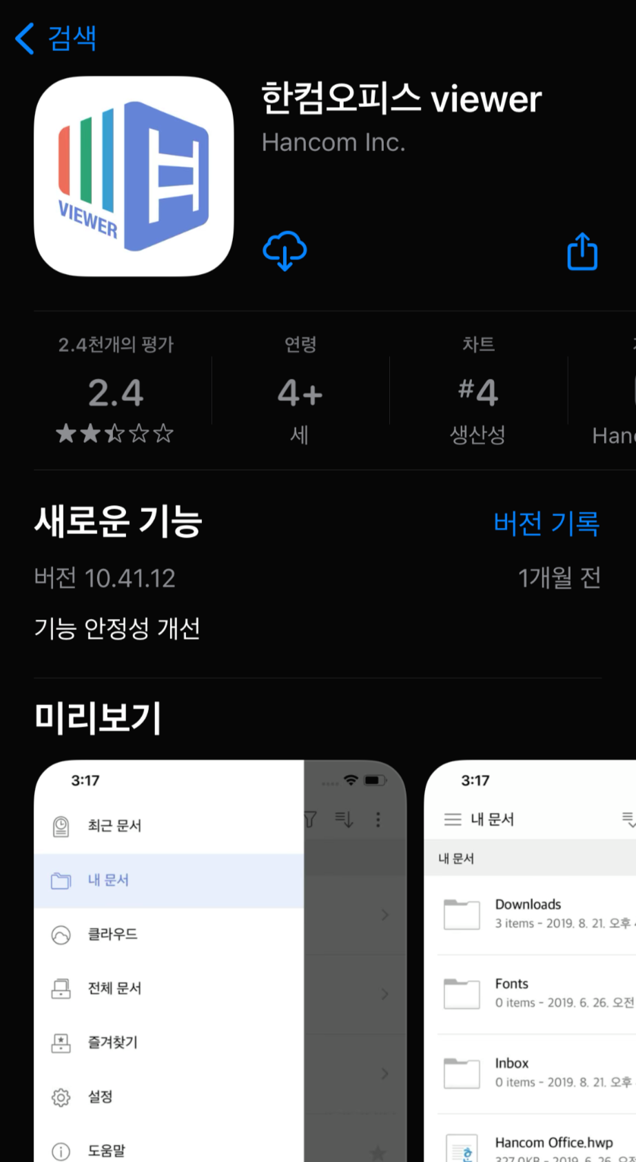 그런데 한글파일을 아이폰으로는 기본 앱으로는 볼 수가 없습니다.