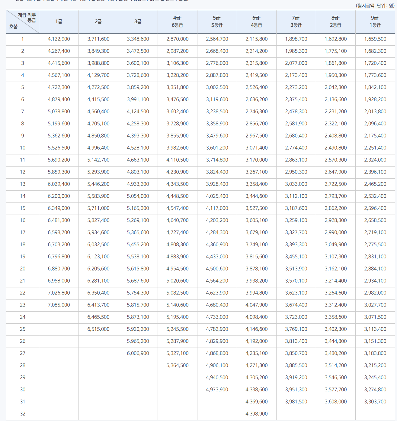 오늘은 2021년 일반직 공무원과 일반직에 준하는 특정직 및 별정직 공무원의 호봉별 봉급표를 살펴보겠습니다.