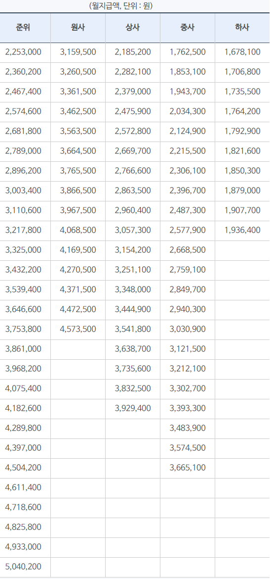 오늘은 2021년 군인 부사관 호봉별 봉급표를 살펴보겠습니다. 준위도 함께 살펴보겠습니다.