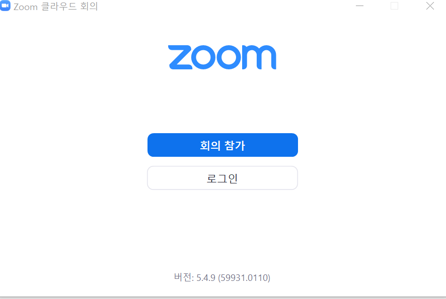 이미 Zoom 클라이언트를 설치하셨다면, 실행해주세요. 다음과 같은 화면이 나옵니다.