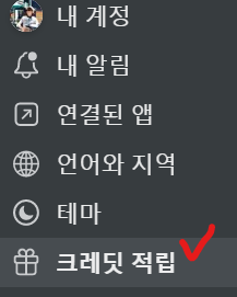 설정에서 크레딧 적립을 눌러주세요.
