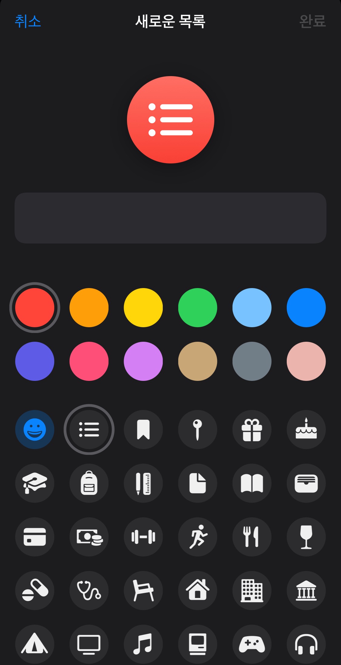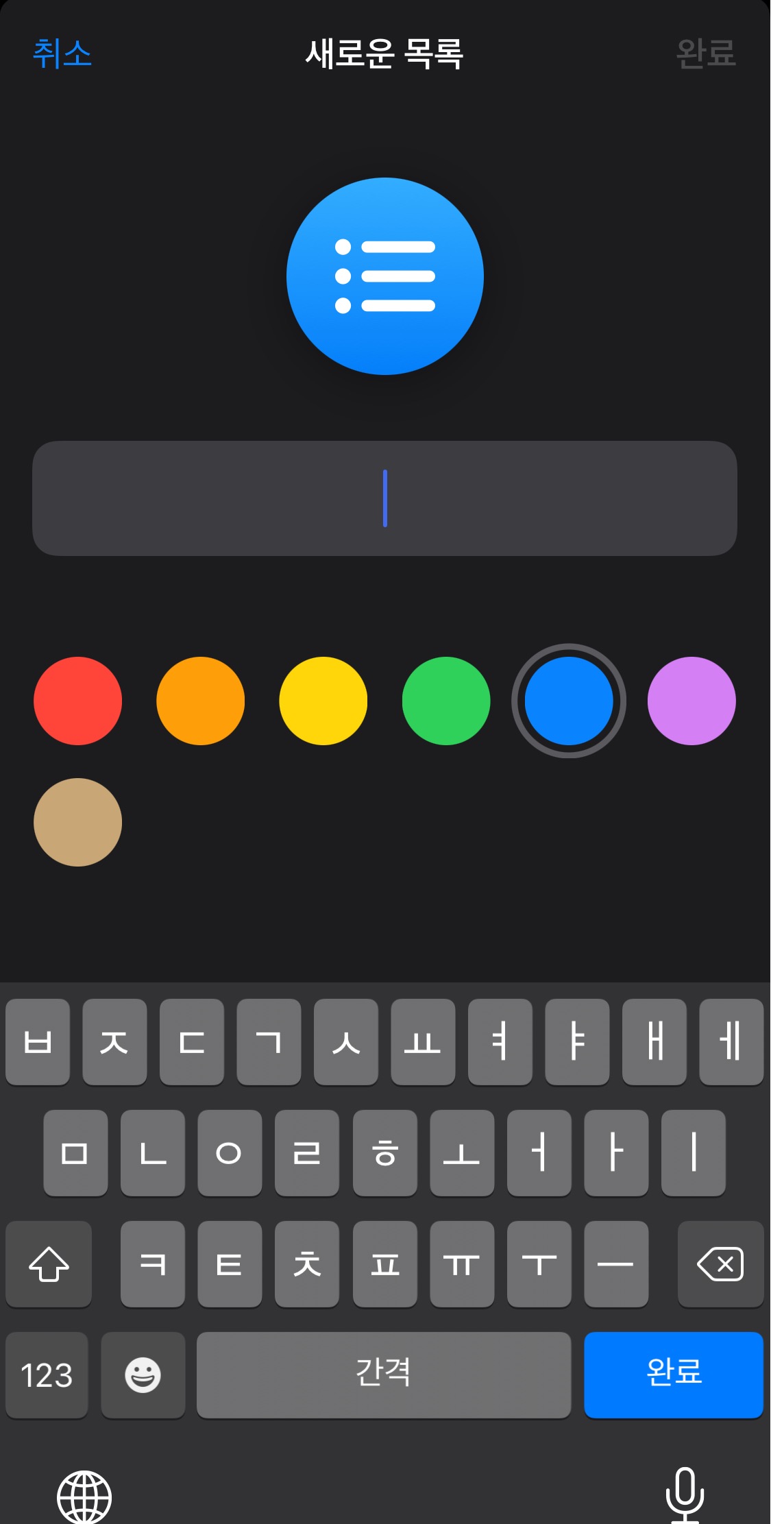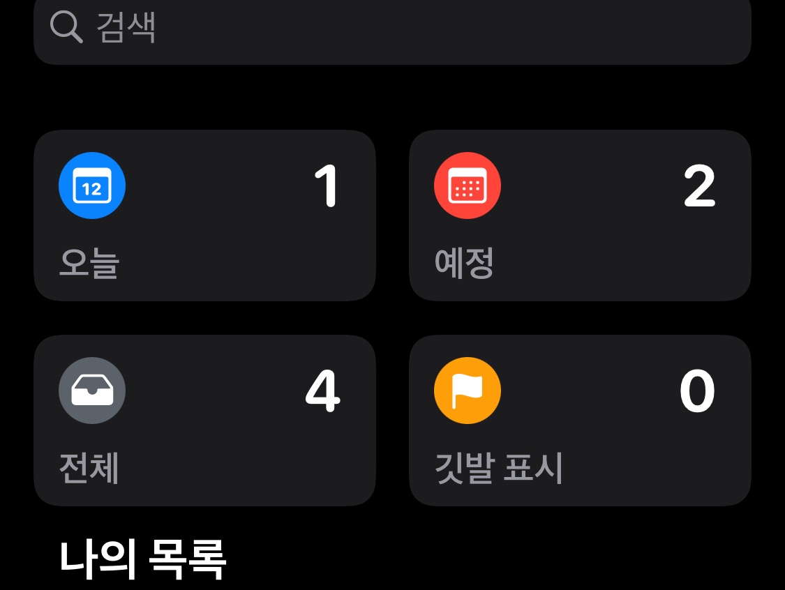 미리 알림 앱을 실행하면 이런 화면이 나옵니다.