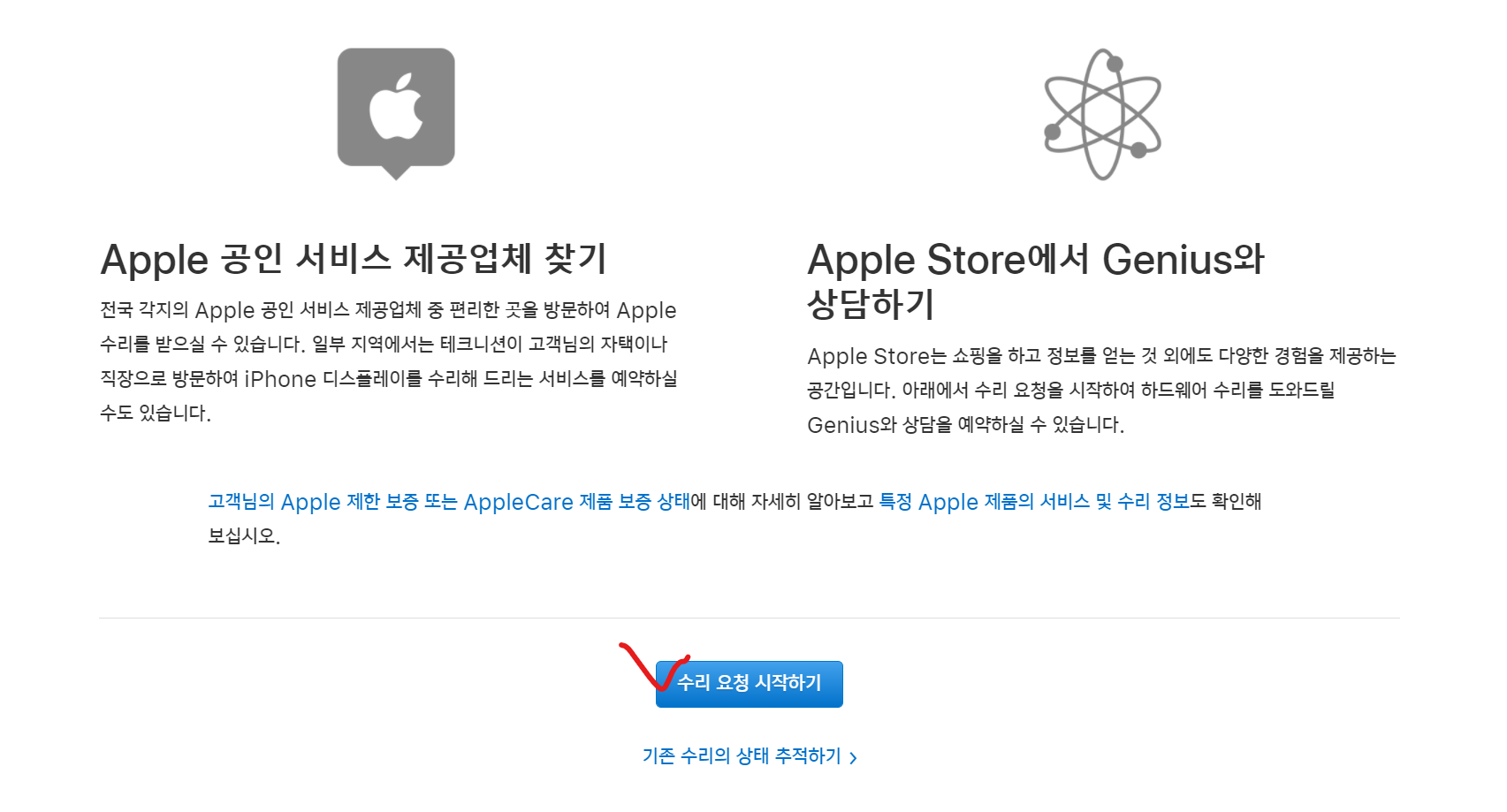 - 애플 공식 서비스센터를 방문하면 됩니다.
