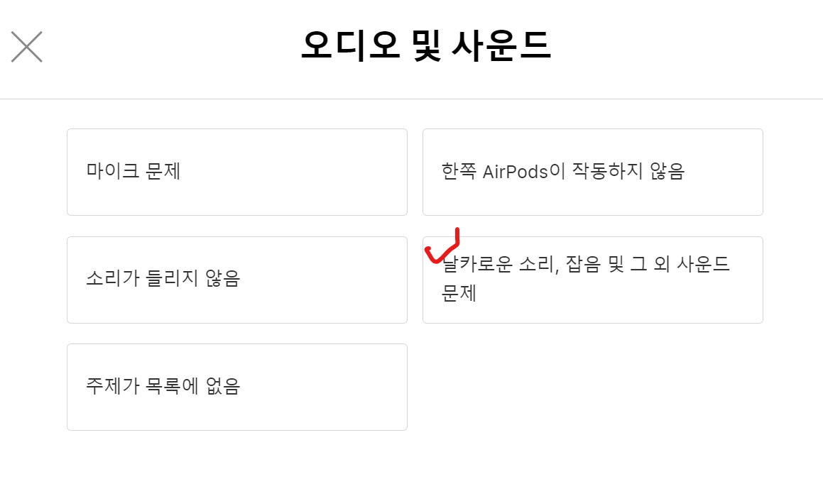 - 에어팟에서 날카로운 소리나 잡음이 들리거나