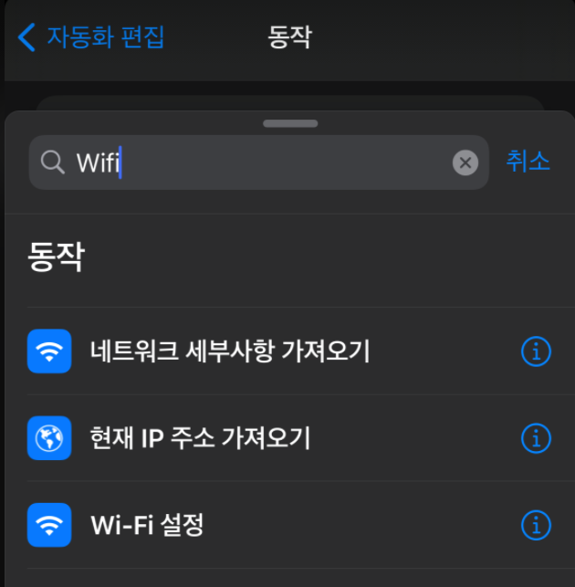 3. 동작 추가 - wifi검색 - wi-fi 켬 설정