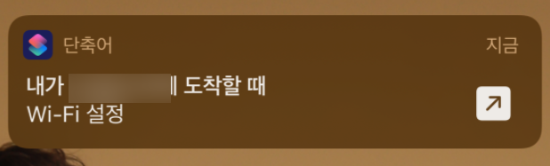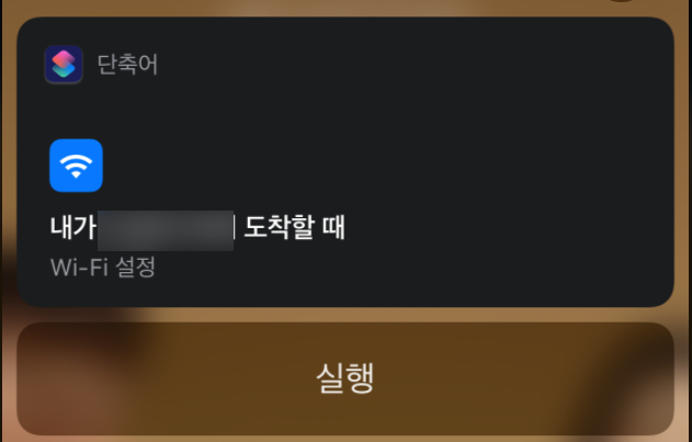 이렇게 집 근처로 오면 설정된 자동화 단축어를 실행하겠느냐는 알림이 뜹니다. 눌러주면,