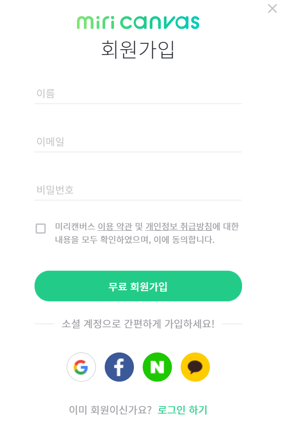 구글이나 페북, 네이버, 카카오로 쉽게 회원가입이 가능합니다.