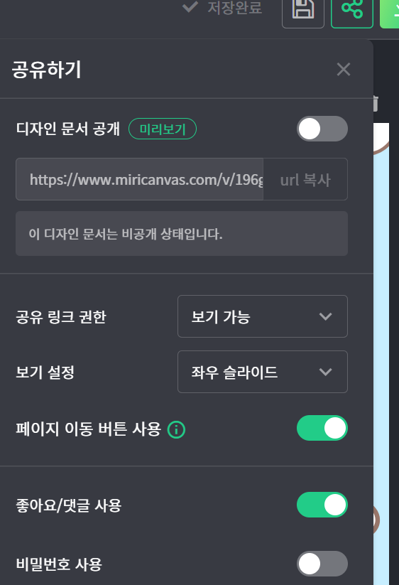디자인이 모두 끝나면 원하는 제목으로 바꿔준 다음에 공유버튼이나 다운로드 버튼을 눌러주세요.