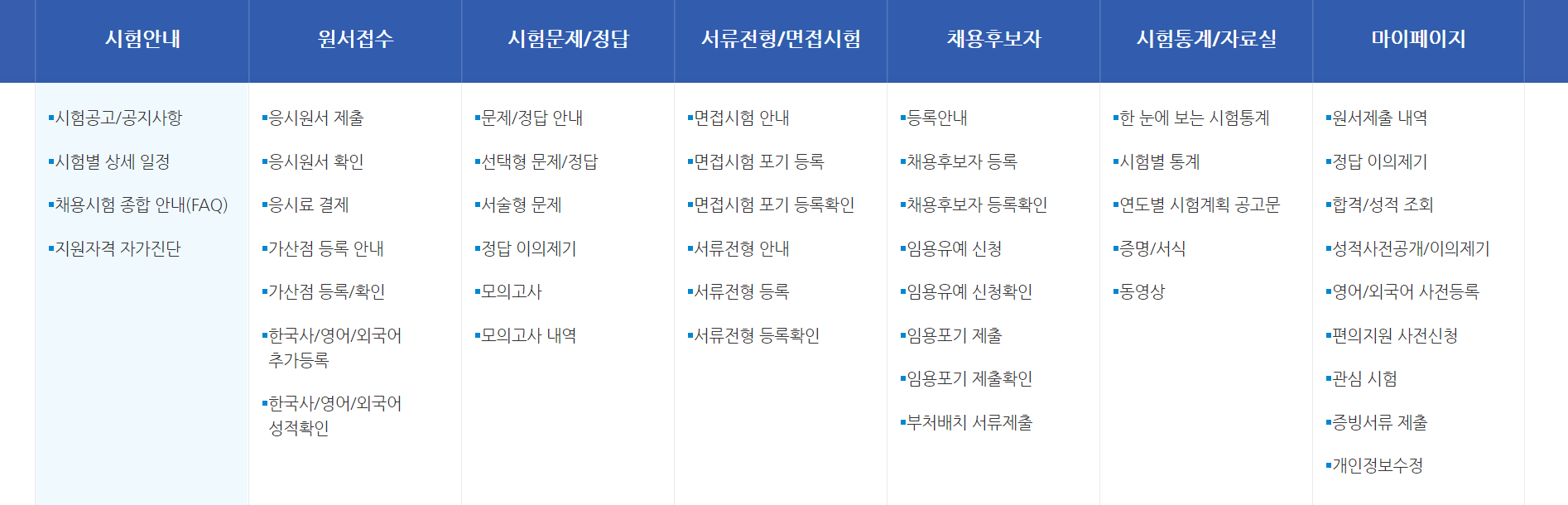 사이버국가고시센터 메뉴는 이와 같습니다.