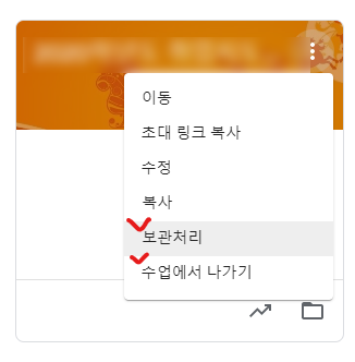 ❗❗다른 사람이 만든 클래스룸에 초대된 경우에도 보관처리는 가능합니다.