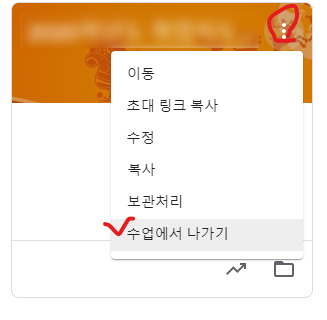 1️⃣간단합니다. 탈퇴하고 싶은 클래스룸 우측 상단 점 3개를 눌러주세요.