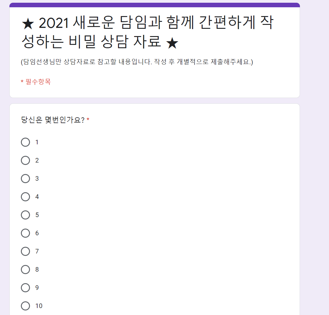 ★ 2021 새로운 담임과 함께 간편하게 작성하는 비밀 상담 자료 ★