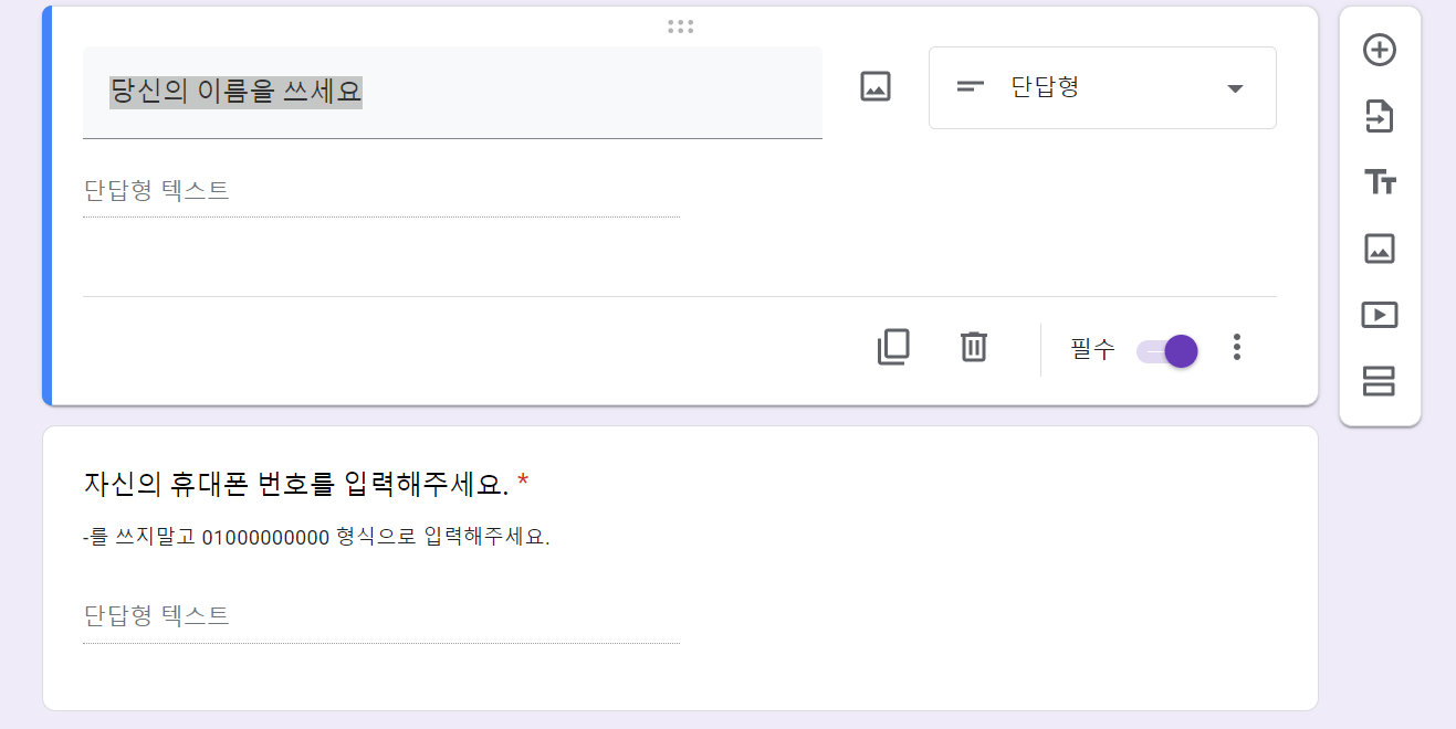 1️⃣설문을 모두 만든 후에 우측 상단 보내기버튼을 누르고