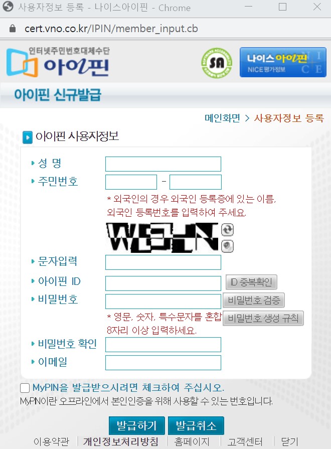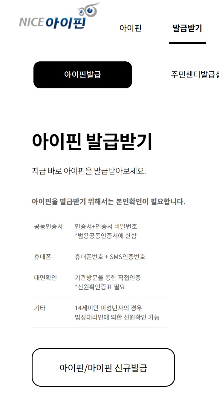 1. 아이핀 발급 홈페이지