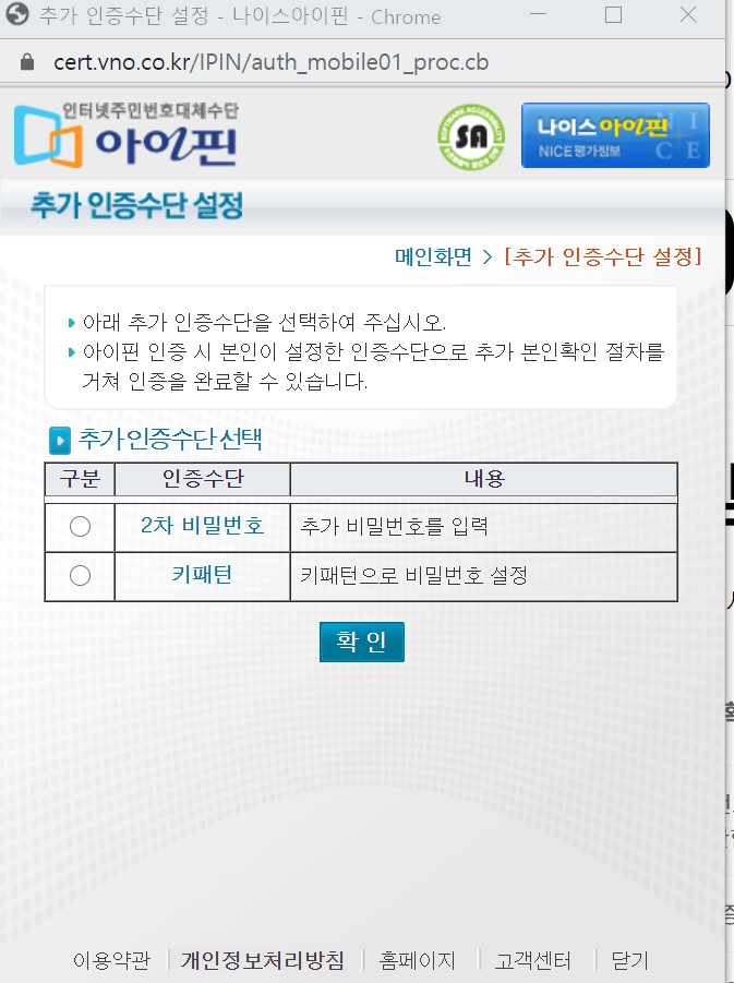 9️⃣ 추가인증수단으로 2차 비밀번호를 선택합니다.