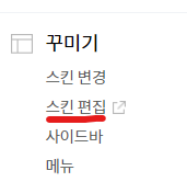 6️⃣ 블로그 관리 홈 - 꾸미기 - 스킨 편집을 클릭해주세요.