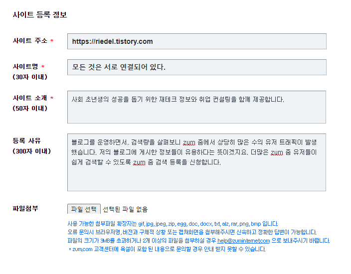zum 줌 검색 등록은 구글 서치 콘솔이나 네이버 서치어드바이스와 비슷하다고 생각하면 됩니다.