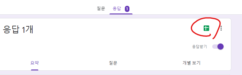 먼저 스프레드시트는 설문지의 응답 탭에서 확인할 수 있습니다.