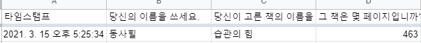 입력을 모두 완료했다면, 이제 스프레드 시트로 독서 기록을 확인합니다.