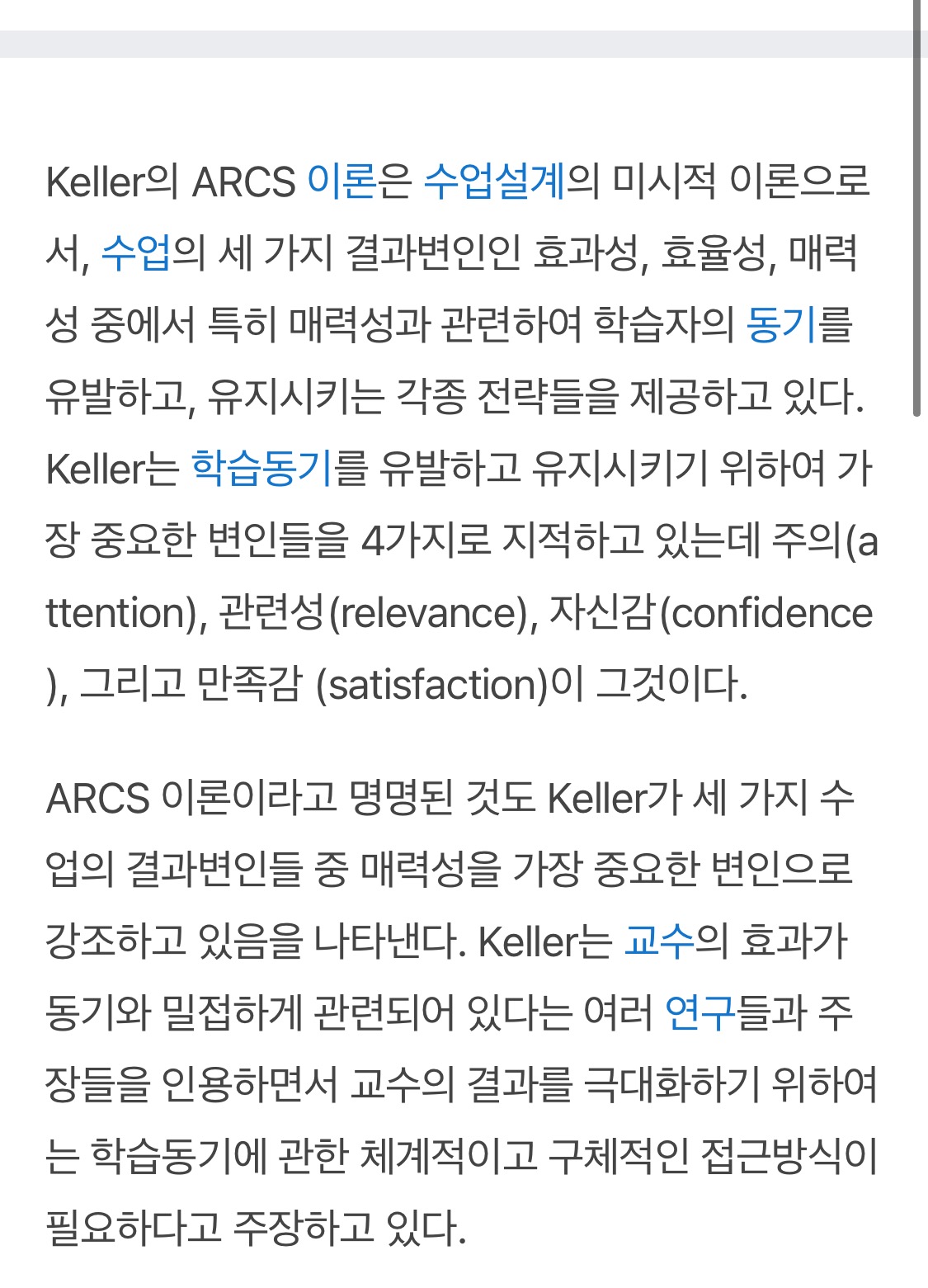 이는 켈러의 ARCS이론을 통해서도 동일하게 확인할 수 있습니다.