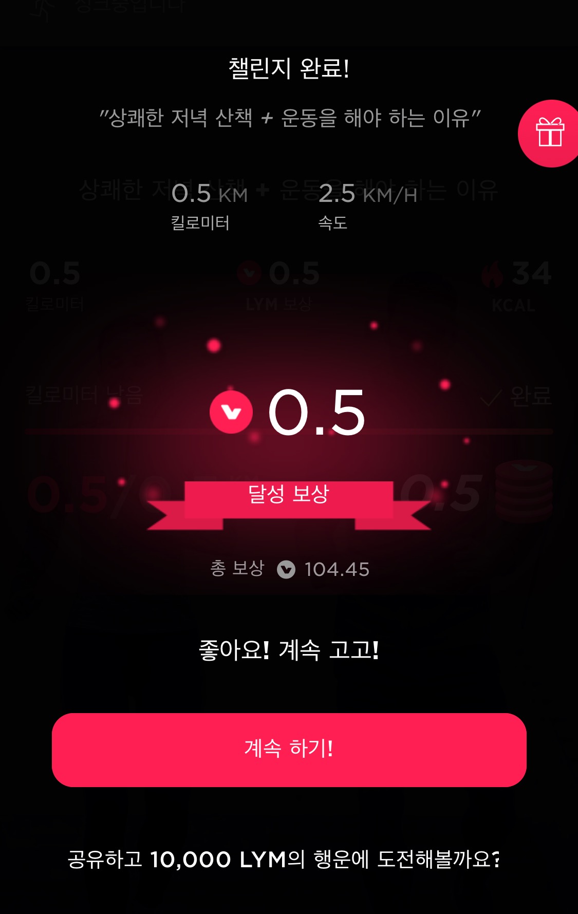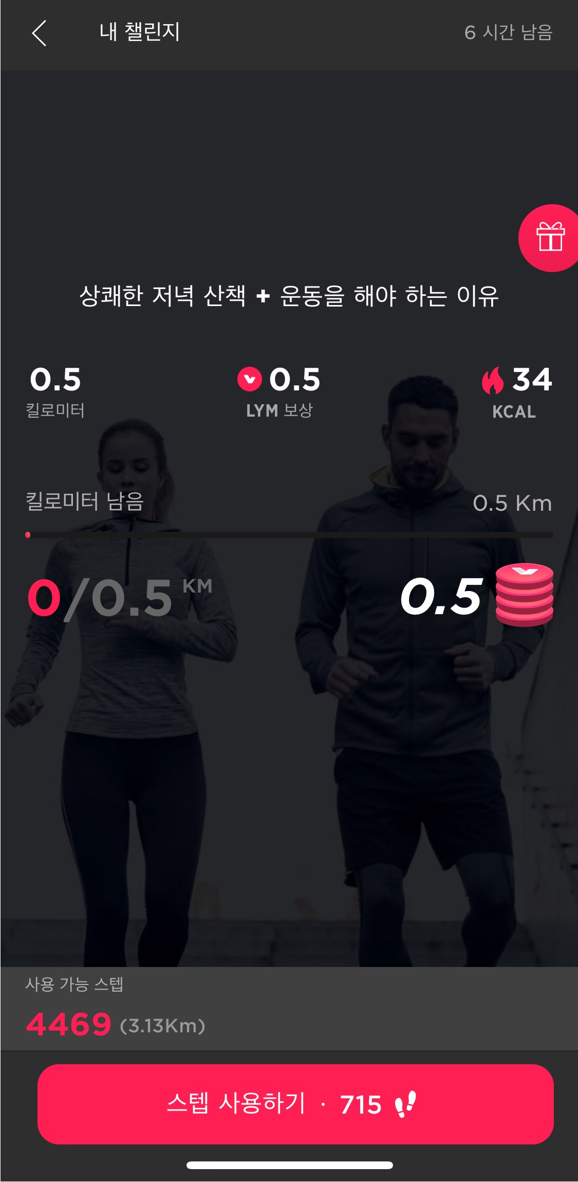 걸어서, 그걸 챌린지에 투입하여 림포코인을 모은다입니다.
