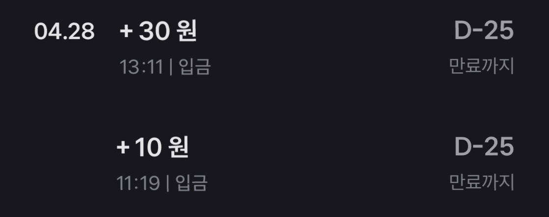 매일 매일 앱에서 출석체크하고, 포인트모아서 하루에 100원씩 모으니까요.