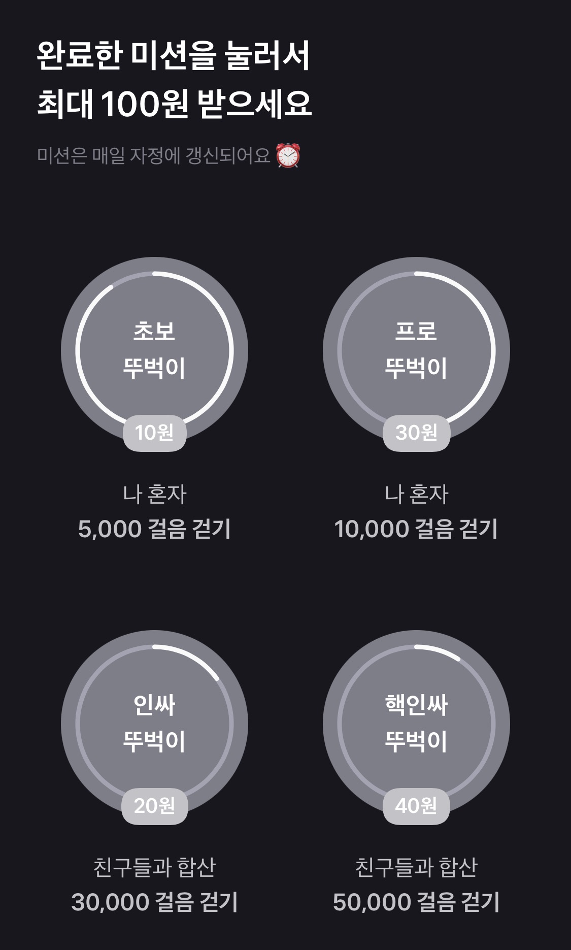 위와 같이! 5000걸음에 10원, 10000걸음에 30원입니다.