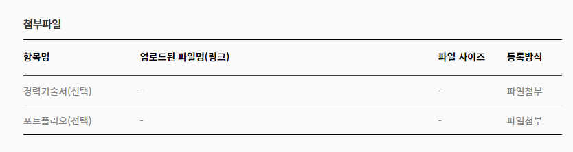 저는 없지만, 경력기술서와 포트폴리오는 가급적 노션을 활용해서 링크로 넣어주세요.