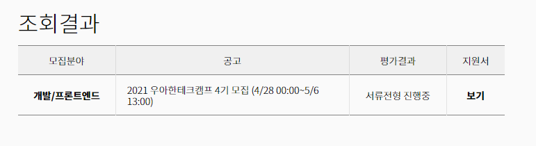 3️⃣ 위처럼 지원 결과 확인이 가능합니다.