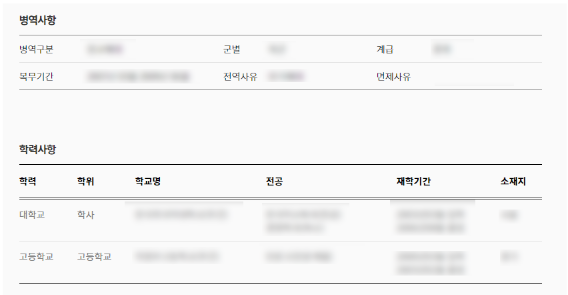 병역사항과 학력사항도 꼼꼼하게 확인을 해주세요.