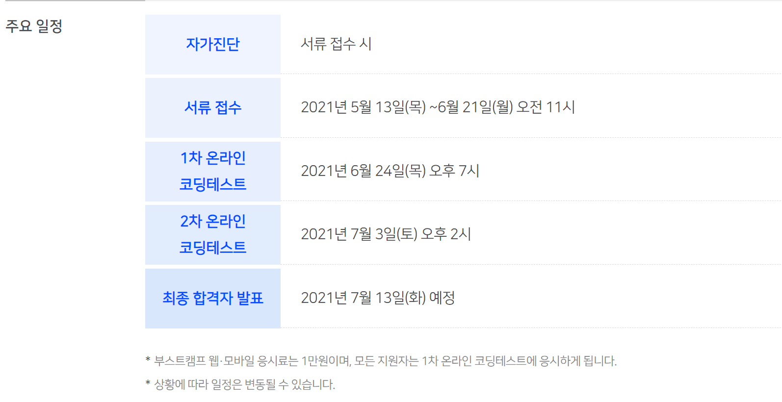우아한테크캠프 끝나고 바로 네이버 부스트캠프 웹·모바일 6기를 지원하면 되는 환상의 일정입니다.