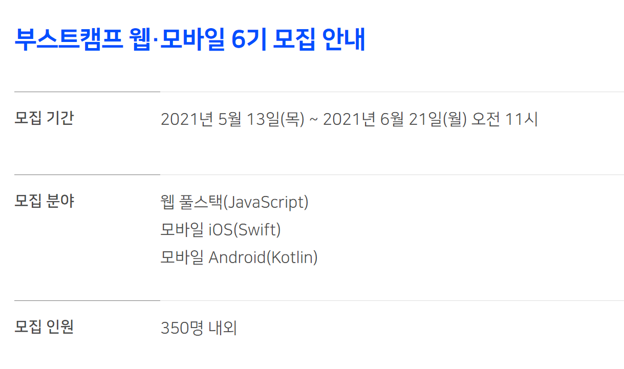 네이버 부스트캠프 웹·모바일 6기 지원 자격은 위와 같습니다.