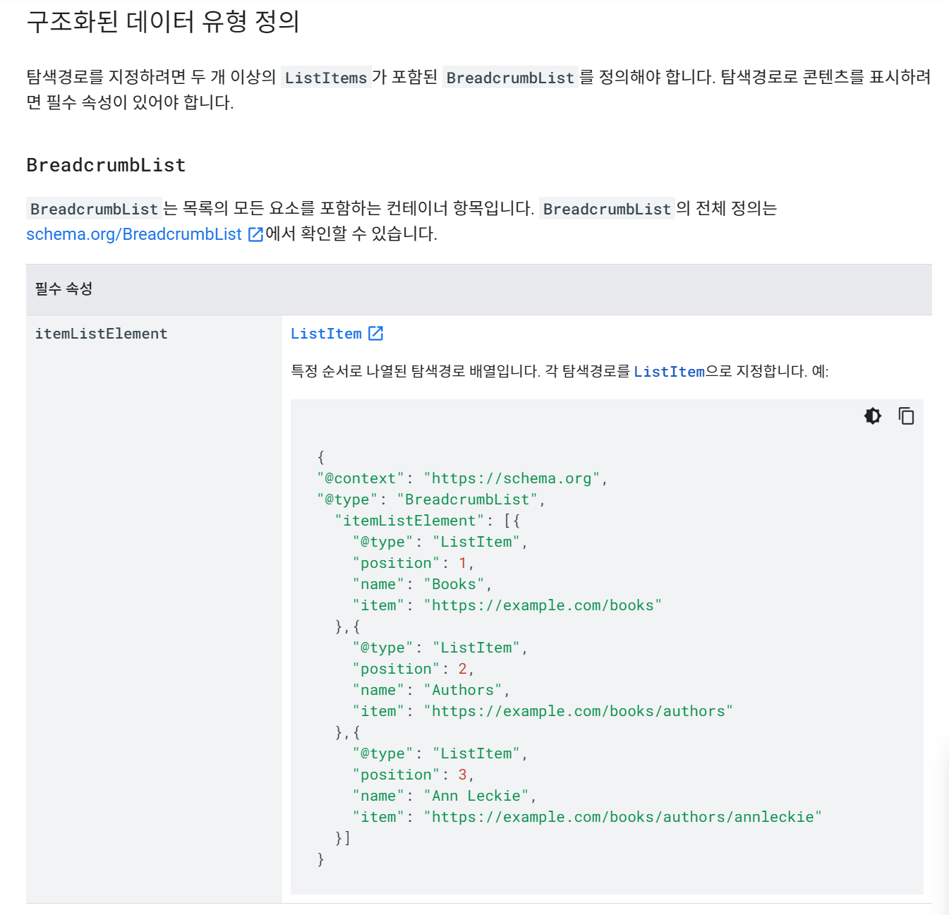 그래서 문제가 무엇인지 추리해보았습니다. 먼저 itemListElement 입력란 누락 상태가 처음 감지된 날짜가 7월 25일이었습니다. 이 날은 제가 티스토리 블로그에 새로 카테고리를 만든 날이었습니다. 무엇이 문제인지 확인하기 위해서 구글 개발자 문서를 검토하였습니다.