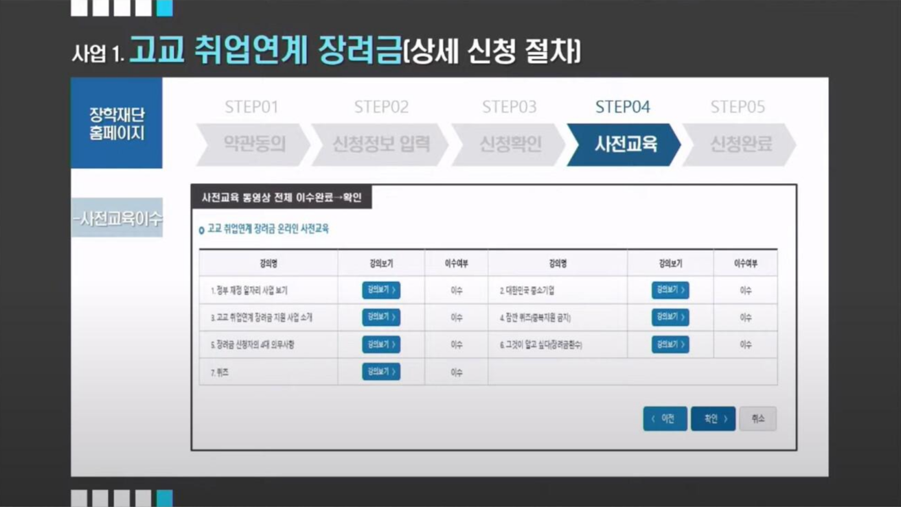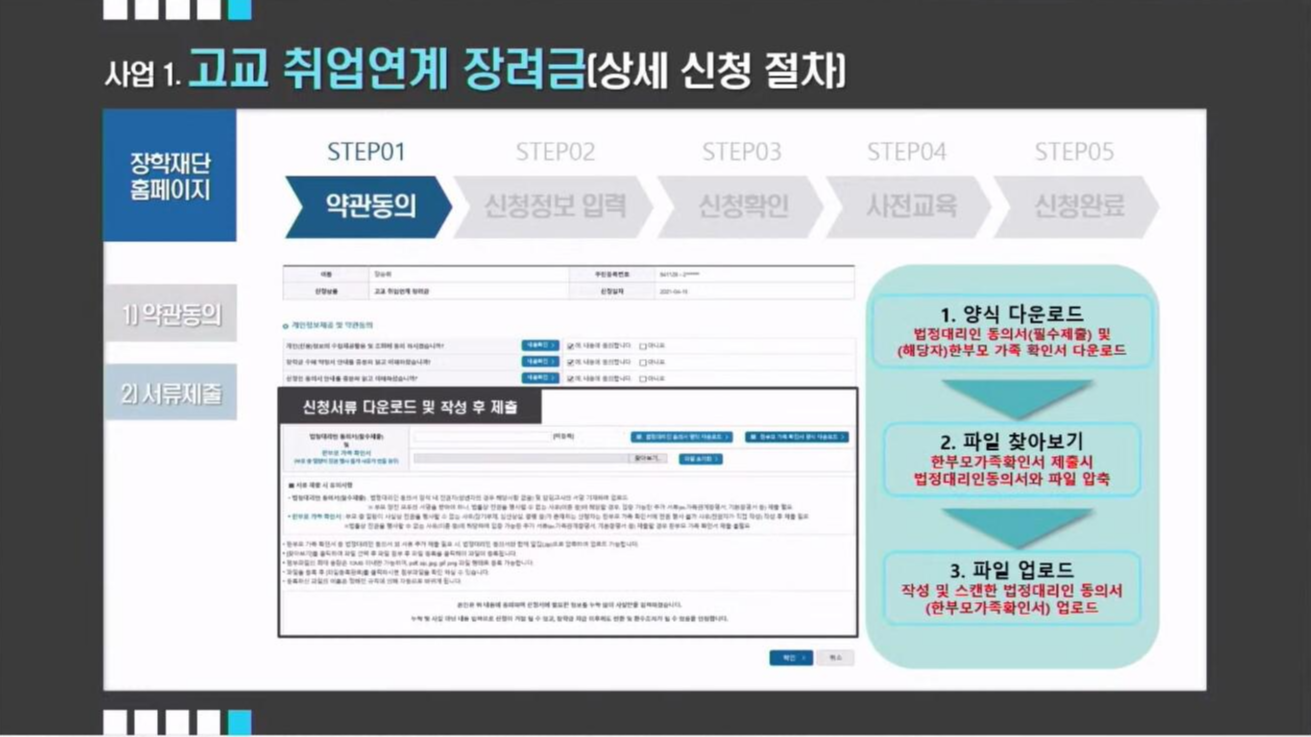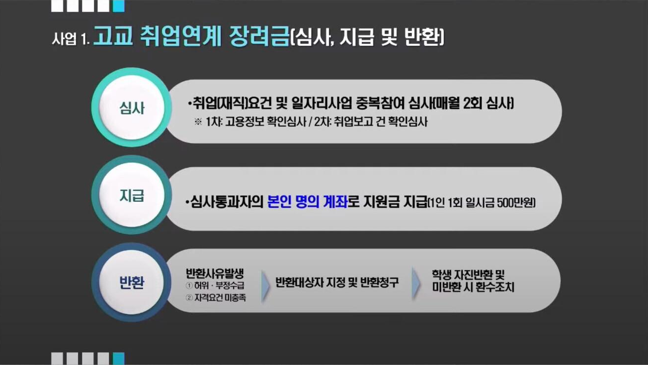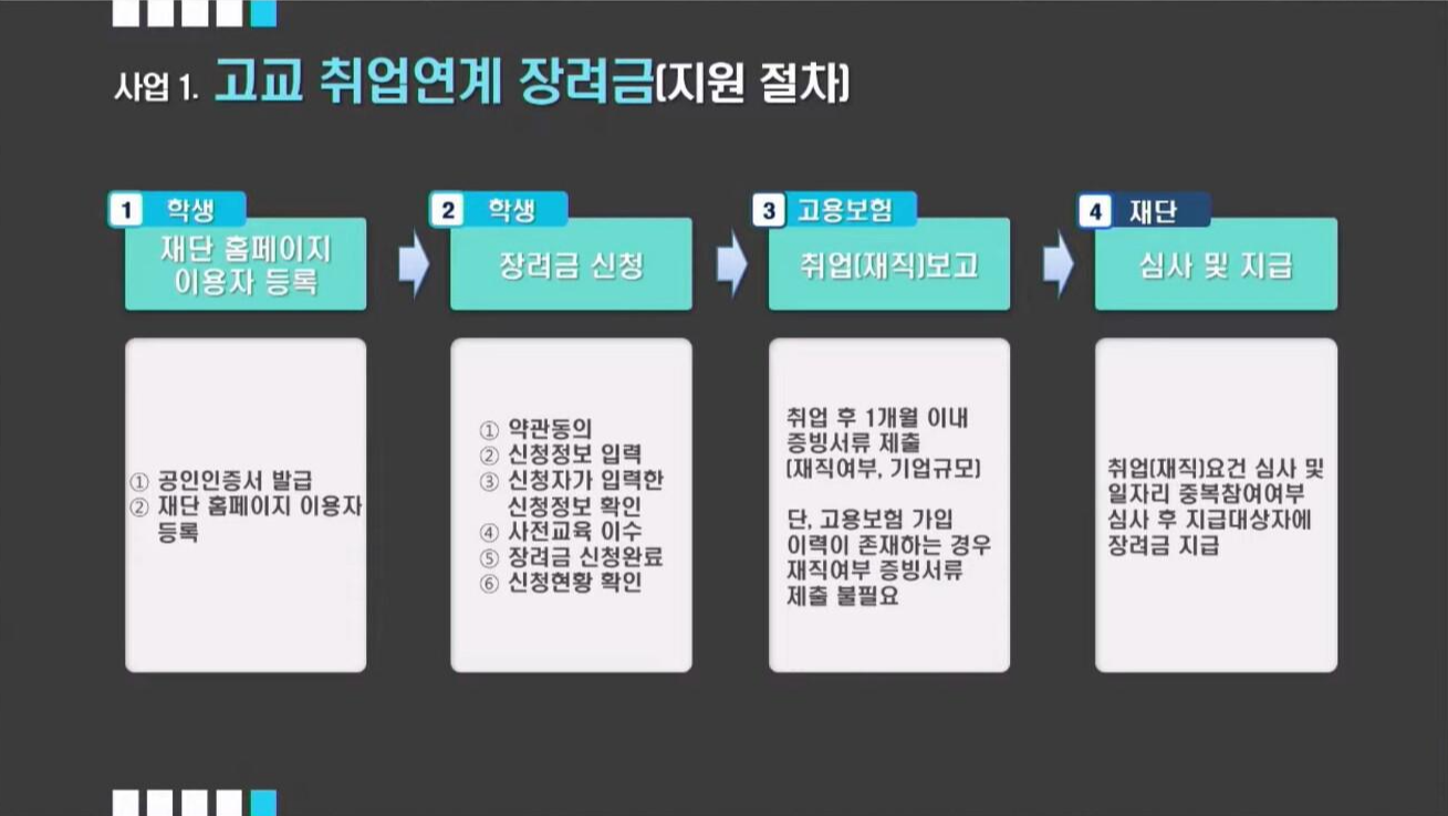 - 고교 취업 연계 장려금은 취업 전에도 미리 신청 가능합니다.