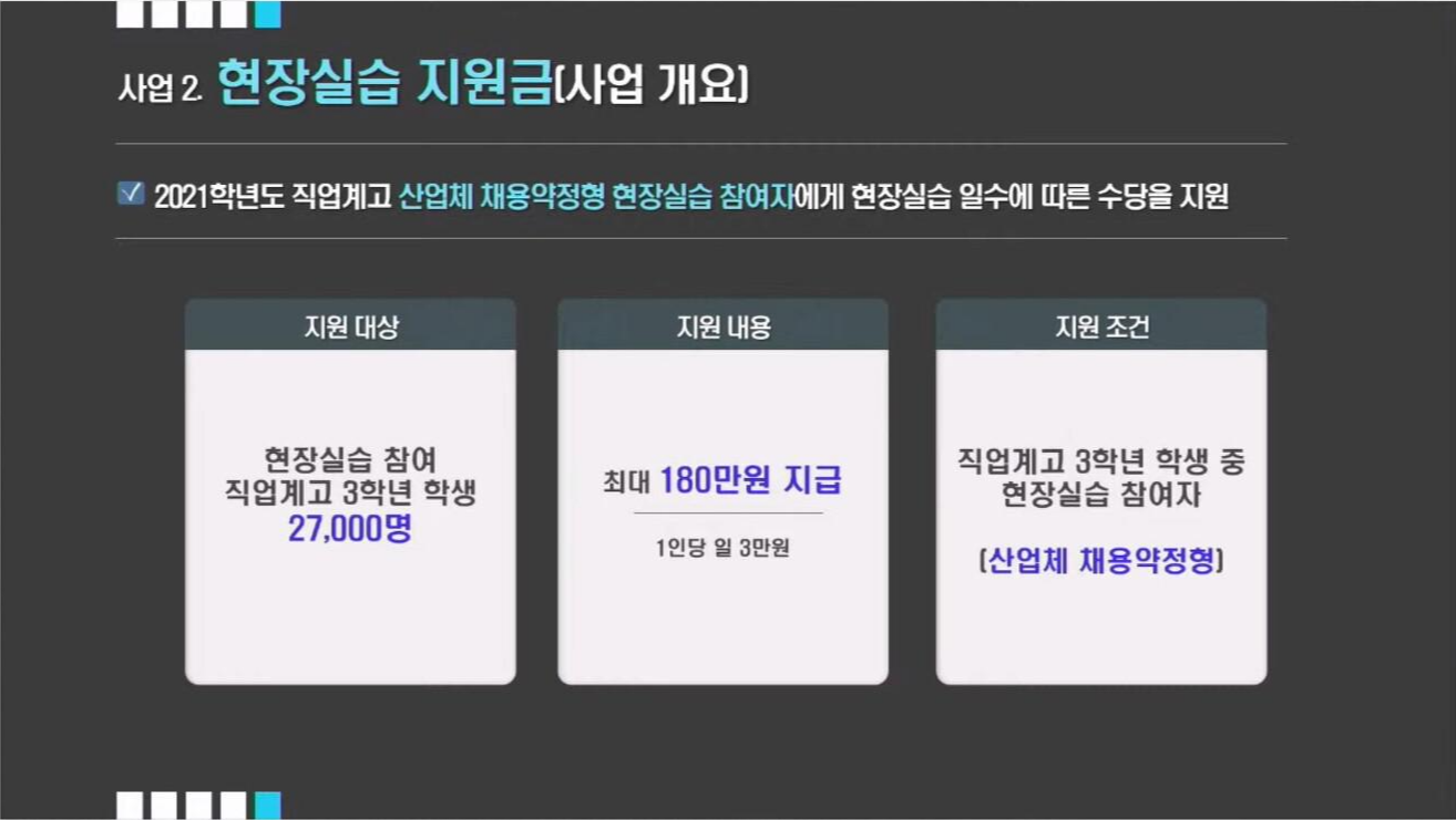 - 지원 대상 : 현장실습 참여 직업계고 3학년 학생