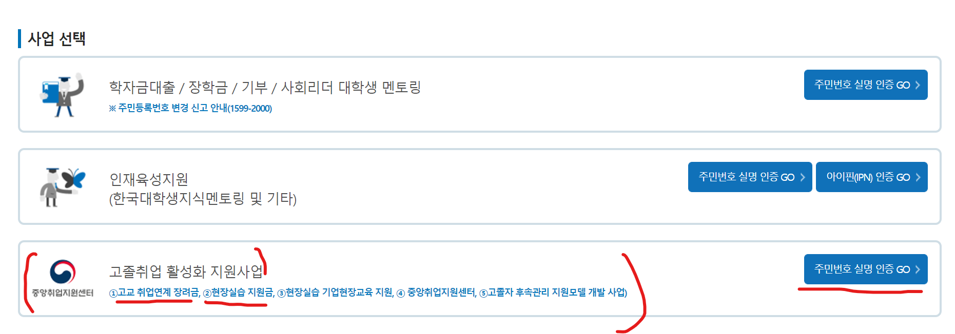 위 접속 방법은 한국장학재단 유튜브에서 알려준 방법입니다. 그런데 2021년 7월 현재 한국장학재단 홈페이지에 접속을 하면 고졸취업관이 없습니다.