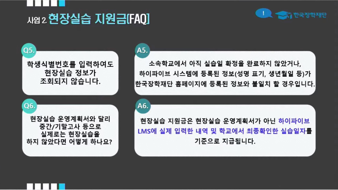 2021 현장실습 지원금 자주 묻는 질문 및 답변