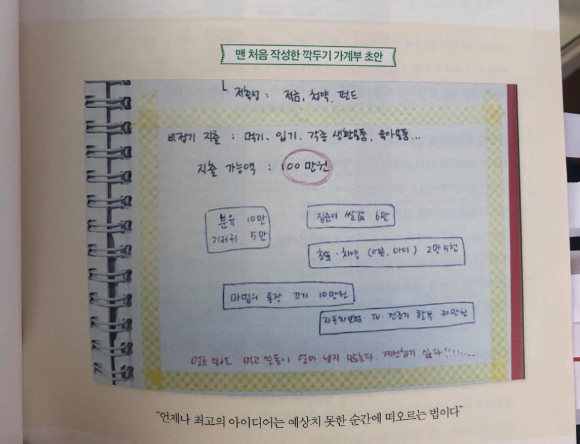 "그저 깍두기 가계부 빈 칸이 줄어드는 것을 보면서 때에 맞게 아끼며 살았다."