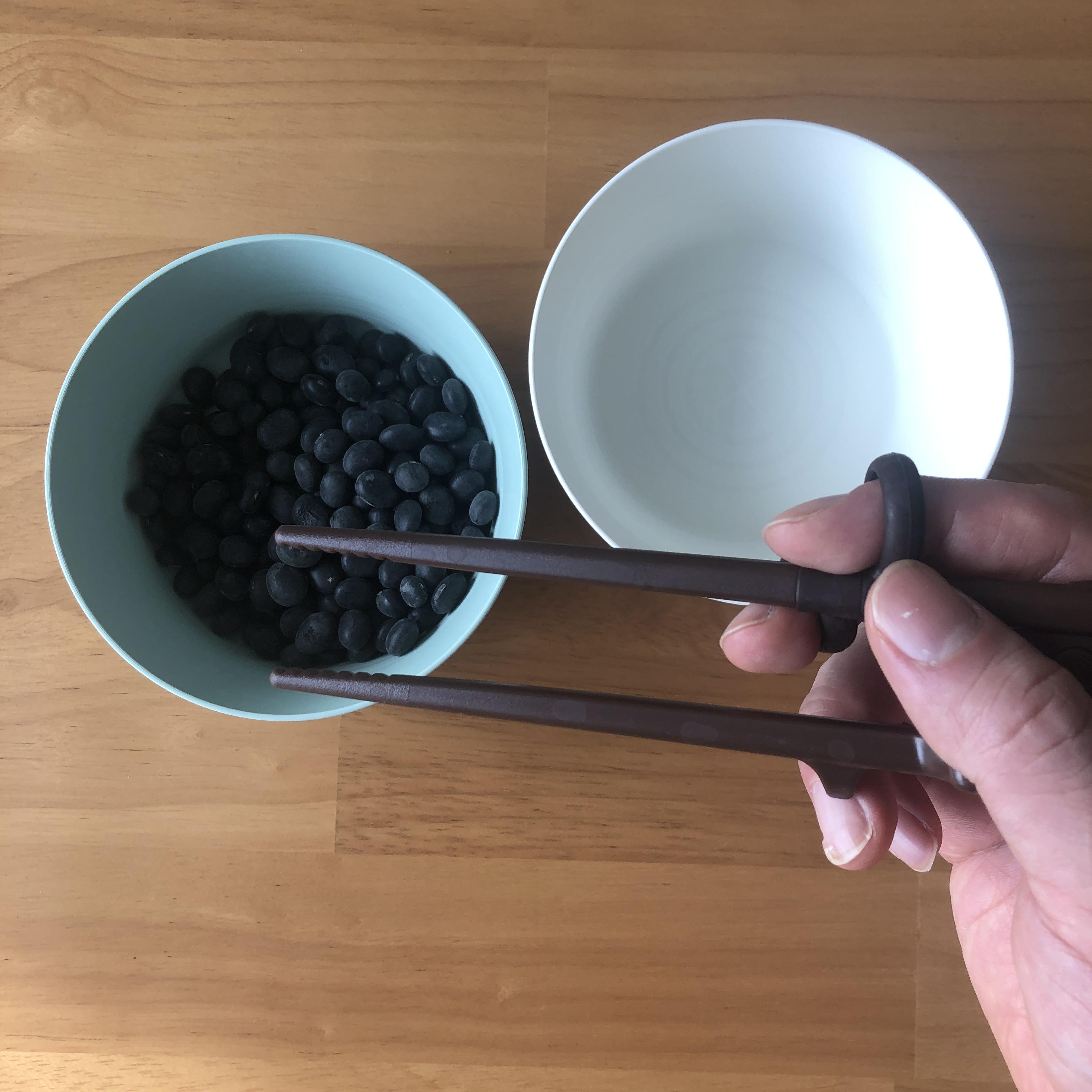 그러나 어설픈건 마찬가지, 결국 젓가락 연습을 위해 검은콩을 준비했다. 하루에 100개씩 집는 연습을 지속적으로 해서, 우선 오른손 젓가락을 익숙해질 것이다. 이후에 에디슨 젓가락에서 일반 젓가락으로 교체 후 동일한 연습을 지속할 예정이다.