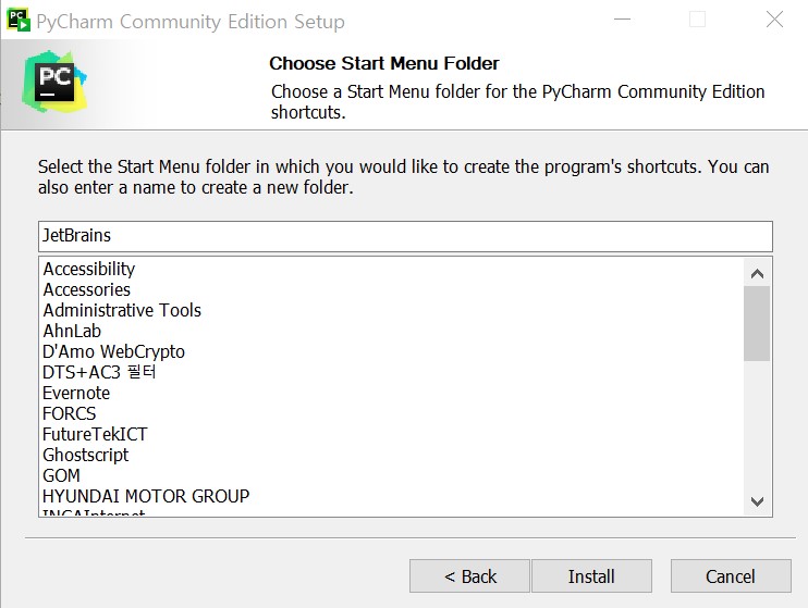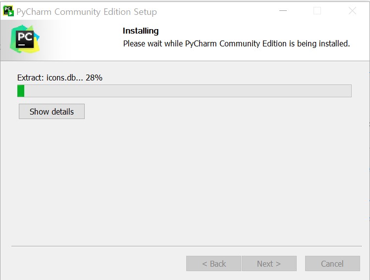 - 파이참(PyCham) 커뮤니티 에디션 다운로드 파일을 실행하면 다음의 셋업 화면이 나옵니다.