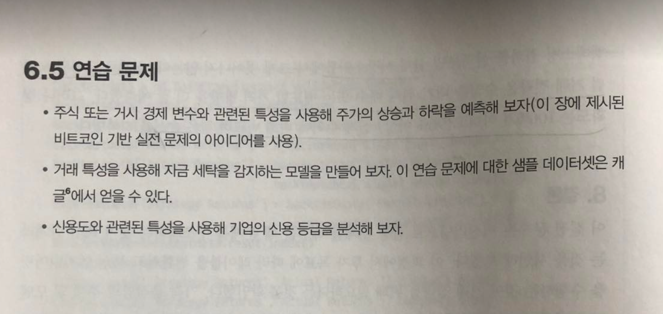 책에서 언급된 위의 내용에서처럼 금융과 관련된 개념을 비트코인 차트 분석과 같은 금융 사례를 통해 제시함으로써 금융 관련 실무를 수행하는데 있어서 발생하는 다양한 문제들을 해결하는데 큰 도움이 될 것입니다.이 장의 마지막에서는 다음의 연습 문제를 제공함으로써 독자로 하여금 더욱 깊이 있는 사례 연구를 해볼 수 있도록 돕습니다.