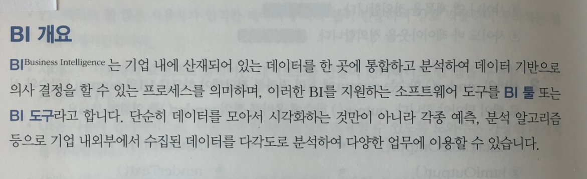 또한 BI는 R과는 사실 직접적인 관련은 없습니다. 쉽게 말해서 태블로를 사용하면 R을 사용할 일이 드물기 때문이죠. R과 BI는 상호대체제 성격이 강하죠. 그런데 “혼자 공부하는 R 데이터 분석”은 실무에서 자주 사용하는 BI 3가지를 언급하고 있습니다.