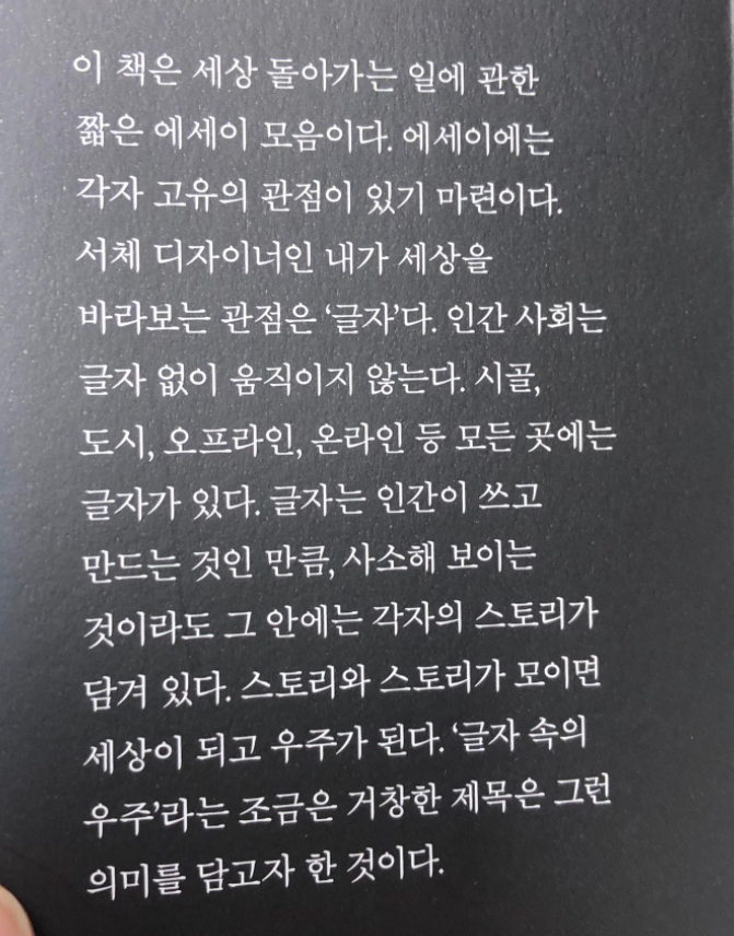 오늘은 서체 디자이너 한동훈이 쓴 책 글자 속의 우주를 소개해드리고자 합니다.