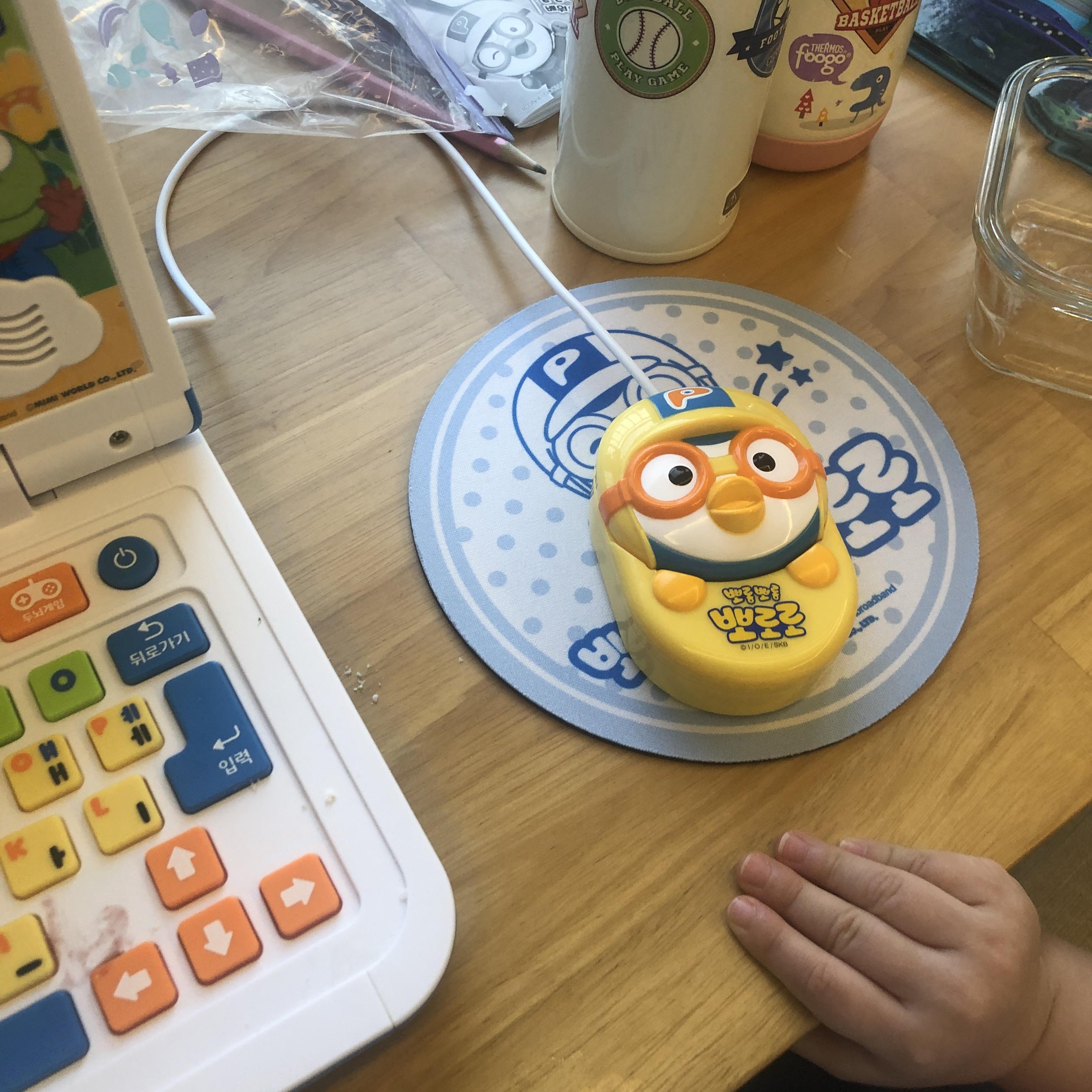뽀로로 마우스와 뽀로로마우스패드가 함께 제공됩니다. 특히 뽀로로 마우스는 뽀로로 코딩컴퓨터와 일체형입니다.